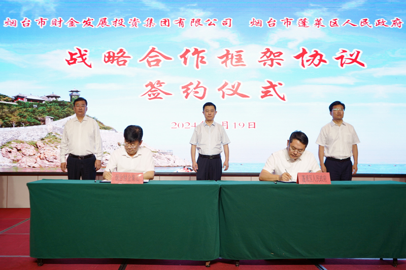隨后,在與會全體領(lǐng)導(dǎo)的共同見證下,蓬萊區(qū)委常委、副區(qū)長田文良,煙臺財金集團黨委委員、副總經(jīng)理修兆強分別代表雙方簽訂戰(zhàn)略合作協(xié)議。