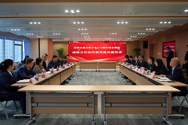 簽約儀式前,省聯(lián)社煙臺審計中心一行首先參觀了煙臺財金聯(lián)動會客廳企業(yè)文化展廳,詳細(xì)了解了財金集團的發(fā)展歷程、業(yè)務(wù)布局及戰(zhàn)略發(fā)展規(guī)劃,并認(rèn)真聽取了煙臺財金聯(lián)盟工作推進情況及創(chuàng)新成效。隨后,雙方進行了深入的座談交流,省聯(lián)社煙臺審計中心黨委書記、主任李英博詳細(xì)介紹了全市農(nóng)商銀行的業(yè)務(wù)開展情況及發(fā)展現(xiàn)狀。雙方圍繞投貸聯(lián)動、金融服務(wù)創(chuàng)新等合作方向深入研討交流,共同表達了進一步深化聯(lián)動合作、攜手推動區(qū)域金融高質(zhì)量發(fā)展的愿望。